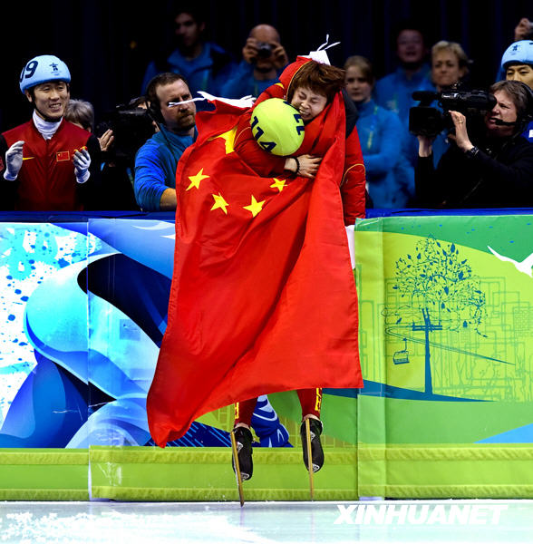 这是周洋在夺冠后和队友王濛激动地拥抱在一起,共同庆祝。新华社记者 陈晓伟 摄