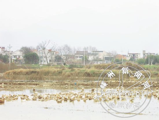 2月19日下午,阳光明媚。位于黄泽镇内的一片冬季低洼积水里,一群群鸭子正在那冬闲积水田中嬉戏。谁说冬季低洼田无用处,正是放鸭好场所。