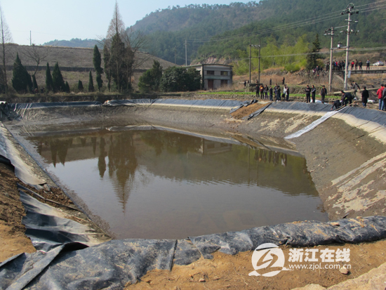 水塘里的水基本抽干