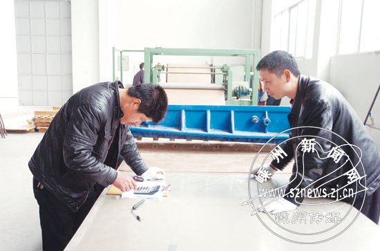 昨日,开工第一天的浙江科达新型建材有限公司迎来了洽谈业务的河南客户。近年来,科达公司不断注重科技创新,用3年时间自主开发的聚氨酯建筑节能技术产品项目被列入国家火炬计划、省重大科技专项,还被评为省高新技术产品。凭借该产品,科达公司去年新增产值2000多万元。图为公司生产场面。