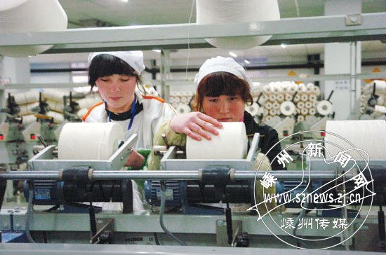 今年来,雅戈尔色织科技有限公司产销两旺,订单络绎不绝。为了赶货,该公司2000多名员工从大年初五(2月18日)就开始正式上班,其中有一部分工序则在初二就开工了。图为该公司新疆籍员工正在打线车间工作。
