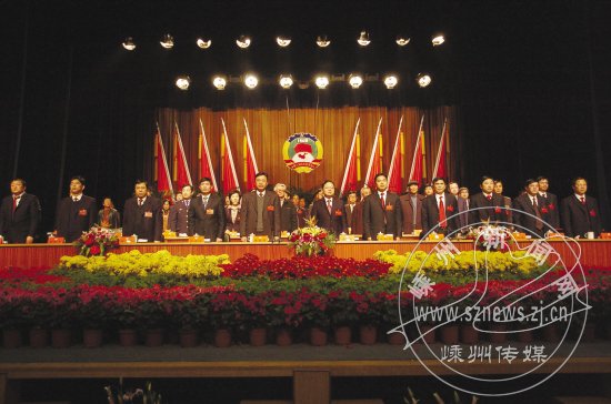应邀出席大会并在主席台上就座的市领导有郭敏、盛秋平、朱钦苗、马志龙、何国英、闾小锋、宋国新、李宝仁、俞仲兴、陶关锋、孙海荣、陈自军、沈颂理、裘全顺、李永承、叶江仁、夏春燕、赵祥军、郑法根、周晓东、孔志刚、俞忠毅,市人民法院院长应芙蓉、市人民检察院检察长丁飞也应邀参加会议并在主席台上就座,在主席台上就座的还有市政协老领导何佩德、梁跃锋、顾洵武、唐玉全。