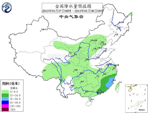 受冷空气影响,8日08时至10日08时,内蒙古西部偏南地区、西北地区东部、华北大部、黄淮大部、江淮大部、江南东部、四川南部、云南中东部、贵州西南部、华南等地将出现6~8℃降温,其中云南东部的部分地区地区降温幅度可达10℃以上;西北地区东部、内蒙古、华北、黄淮东部等地将伴有4~6级风。10日凌晨,江南大部最低气温可达1至零下2℃,华南中北部2℃至5℃,华南南部6℃至8℃。