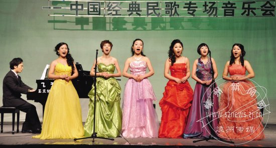 3月6日晚上,由嵊州市音乐舞蹈家协会和嵊州市文化馆主办的“剡溪春韵——中国经典民歌专场音乐会”在市艺术中心举行。演出现场,歌手姚华江、黄丽敏 、张芳等分别演唱《茉莉花》《太阳出来喜洋洋》等12首经典民歌,给500余名观众带来一次经典艺术大餐。图为演出现场。
