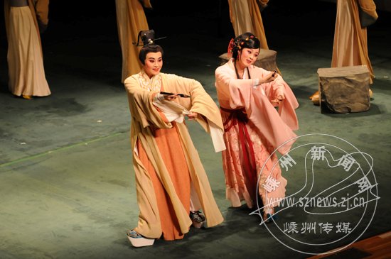 嵊州是越剧的故乡,在这块肥沃的土地上,诞生了袁雪芬、尹桂芳、范瑞娟、傅全香、王文娟等一大批著名越剧表演艺术家。近年来,市委市政府在政策支持、资金配套、舆论支撑等多个方面进行了积极有效的“保驾护航”。比如,从2008年起,嵊州先后设立总额2000万元的越剧文化发展专项基金和专门的“绿城嵊州”越剧发展奖励基金,同时每年安排200万元的越剧文化专项资金,大大缓解了嵊州越剧产业发展面临的资金瓶颈。如今,作为主要演出机构的嵊州越剧团吸取了越剧发源地的充足营养,坚持“出人、出戏、出精品”的办团方针,继承和发扬越剧善于吸收、勇于创新的优良传统,不断改革前进、发展成长。剧团投资500万元先后创作排练了《貂禅与吕布》、《柳永与虫娘》、《蔡文姬》、《王羲之》和《汉文皇后》等大型剧目。此次向全国“两会”献礼,不仅展示了嵊州越剧的迷人魅力,更打响了越剧故乡嵊州的知名度。