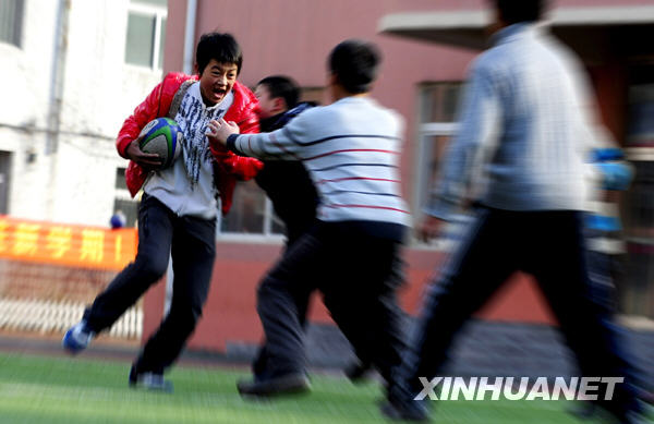 橄榄球队的小队员们在进行对抗比赛(3月11日摄)。 新华社记者姚剑锋摄