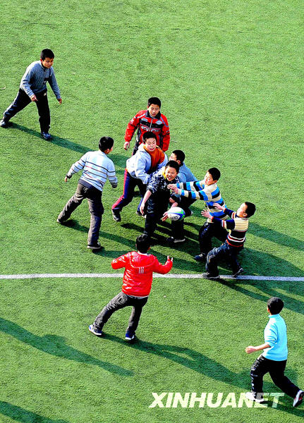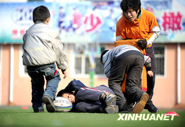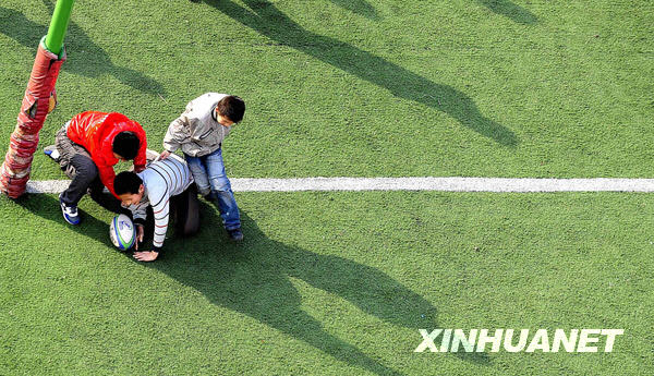 橄榄球队的小队员们在进行对抗比赛(3月11日摄)。新华社记者姚剑锋摄