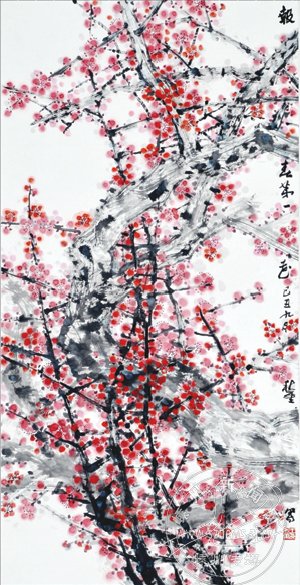 “王秋童的水墨花鸟是一首首诗词,一段段小提琴乐曲和一声声越剧的清唱。”的确,王秋童钟爱他的花鸟画就像钟爱清丽的越剧一样。他的《红梅》《幽兰》,他的《墨竹》《紫藤》《牡丹》《金桂》,他的《湿了荷花雨便休》,无一不充盈着水的柔婉,越剧的清灵。