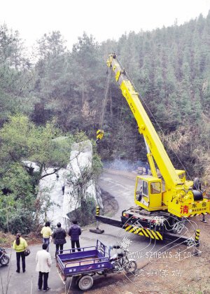 本来,从37省道到新昌的车要过嵊州市区104国道的大转盘,然后向南转向。交警说,车子从甘霖镇上路西村的道口拐入后,一直往里南乡方向的山间公路行驶,由于这是一条路面窄且弯道多的盘山公路,结果车行至上路西村后的一转弯处时就发生侧翻,翻入点正好是乌石坑水库,车上26吨活性轻质碳酸钙落入水库之中。