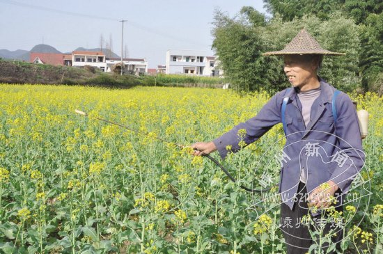 今年我市农民共种植油菜面积3万余亩,眼下正是油菜花开的旺季,农业专家表示,油菜花期施硼可以提高结实率,可促使油菜丰产增收。图为甘霖镇大岩坂的油菜田里,农民正在施硼。