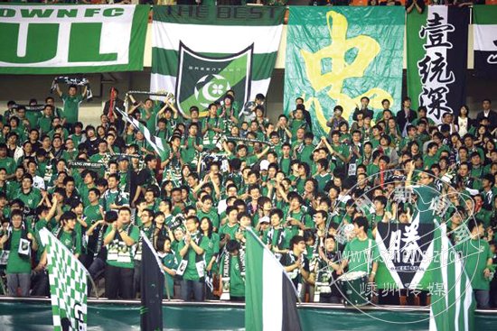 随着这个“忠”字,小鱼几乎走过了中国所有拥有职业球队的城市。2007年绿城在中超的第一个赛季,最后一个客场挑战有着“中超巨无霸”之称的山东鲁能,50多位球迷从浙江各地赶往山东省体育中心为绿城加油。然而一个早早的丢球,让绿城队陷入了背水一战的地步,“客场,对手又是山东鲁能,这场球实在太难了。”小鱼回忆说,“我们告诉自己不能放弃,我们必须用我们的战斗力去影响球员。” 50多个球迷连续90分钟的高唱,令场上的球员感受到了家乡的关注,在最后一分钟,外援TICO的一个进球,终于把绿城从死亡线了拉了回来。进球后,TICO狂奔着来到绿魂看台下方,向球迷表示感谢。“我坚信,那一刻就是‘绿色灵魂’的眷顾。”说到这里,小鱼有些动情。
