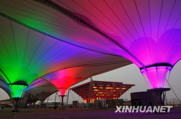 目前,世博园区中国馆已开始进行馆内灯光调试。新华社发(徐正魁 摄)