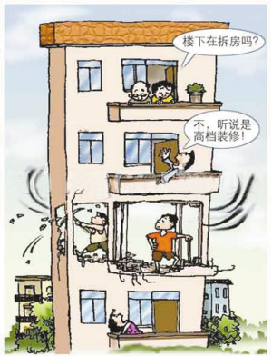 中午午休时间或者晚上回家后,想宅在家里睡睡觉,看看电视?别做美梦了,隔壁邻居家却地动山摇,一会儿哐当哐当砸墙,一会儿嘎吱嘎吱锯木头……装修的噪声,让人很痛苦,但也很无奈。