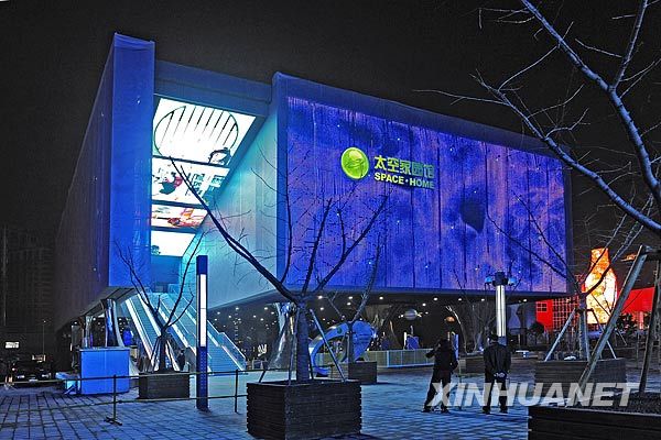 3月31日,上海浦西世博园区太空家园馆点亮景观灯。 当日,上海世博园区流光溢彩,以绚丽的姿态迎接世博会开幕倒计时30天的到来。新华社发(郭长耀 摄)