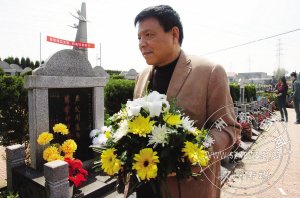 据粗略估计,清明节期间,天伦园公墓迎来4万多市民前去扫墓。昨日,记者在天伦园公墓看到,大多数墓穴前安放着菊花等一束束鲜花,文明祭祀蔚然成风。图为昨日一市民手捧菊花缅怀先人。