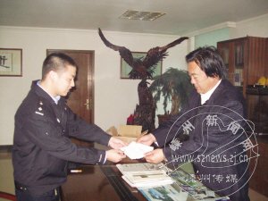 上海世博会期间,进入上海市境的各陆路道口将实行安全检查特别措施,我市从4月1日正式启动《进沪车辆专用通行证》的申领、发放工作。图为甘霖派出所民警为我市首家上市企业——浙江三鼎工具有限公司办理了甘霖镇首张入沪通行证。