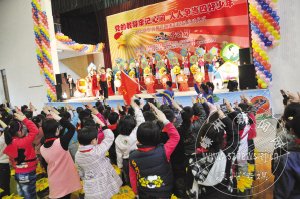 又讯 昨日下午,绍兴市少先队“党的教导牢记心间,人人争当四好少年”主题教育活动在我市城北小学启动。启动仪式上,我市各少先队表演了丰富多彩的歌舞、小品和越剧等文艺节目(如图)。