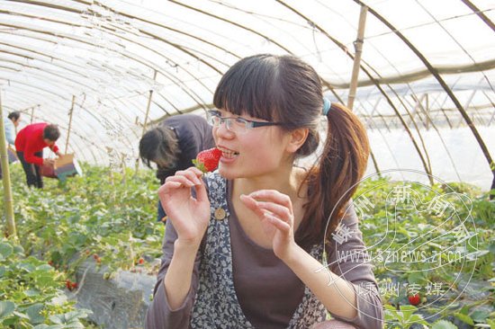 草莓基地的草莓好甜!