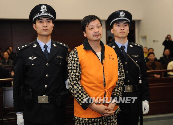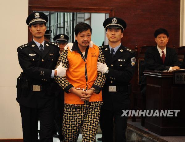 4月8日,犯罪嫌疑人郑民生被押上法庭。当日,福建南平“3·23”恶性杀人案在南平市中级人民法院开庭审判。 3月23日7时20分左右,正逢孩子上学的时间,在福建省南平实验小学门口,犯罪嫌疑人郑民生连续砍伤砍死13名小学生,造成8名孩子死亡,5名孩子受伤。新华社记者张国俊摄