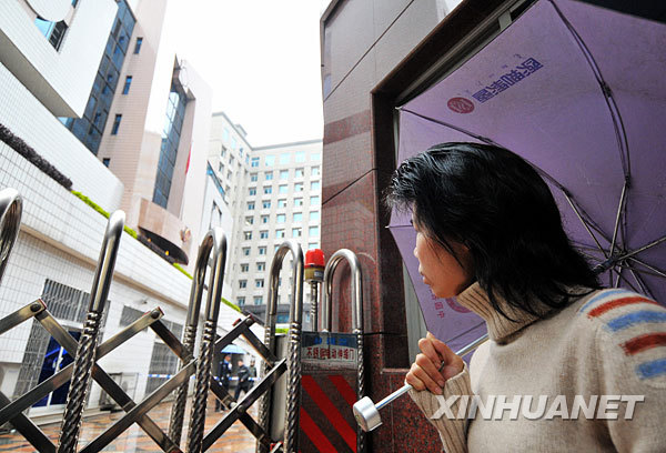 4月8日,一位遇害学生家长在法院大门口。当日,福建南平“3·23”恶性杀人案在南平市中级人民法院开庭审判。