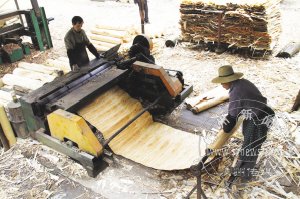 地处下王镇何村的锦德木业厂,因地制宜,发展经济,利用本地各种林木,结合引进外地木材,创办了制板产业。该厂生产的多层板,热销宁波、绍兴等地,年销售额达400多万元,正以逐年提升的良好势头不断扩大产量,已成为当地经济发展的一大亮点。图为该厂工人正在制作板材。