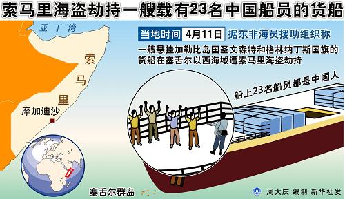 图表:索马里海盗劫持一艘载有23名中国船员的货船新华社发
