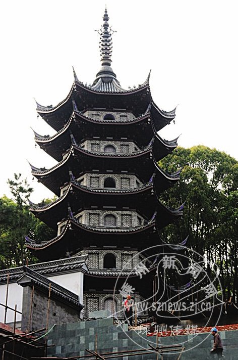 4月10日下午,鹿山森林公园一期主体工程——异地重建的应天塔已完成工程建设,拆除了建设用的脚手架,应天塔雄姿展现在鹿山森林公园的山冈上,将以崭新的风姿迎接游客。