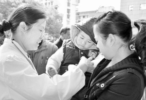 4月7日上午,嵊州市爱卫办、卫生局以及疾控中心联合在该市中心广场开展了一场以“城市化与健康”为主题的世界卫生日宣传活动,向该市市民宣传最新的卫生健康保健知识并进行义诊。图为义诊现场。 (张亮宗 王红霓 摄)