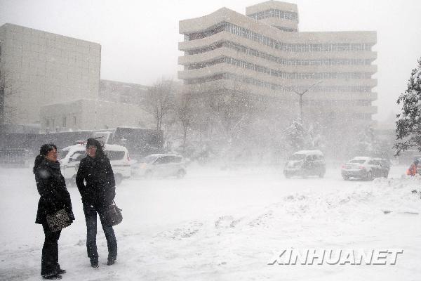 4月13日,哈尔滨市民在风雪中候车。从12日中午开始,哈尔滨突降大雪。黑龙江省12日发布的暴雪蓝色预警和道路结冰黄色预警称,哈尔滨、佳木斯等地局部有大到暴雪。目前风雪仍在持续。新华社记者王春雨摄