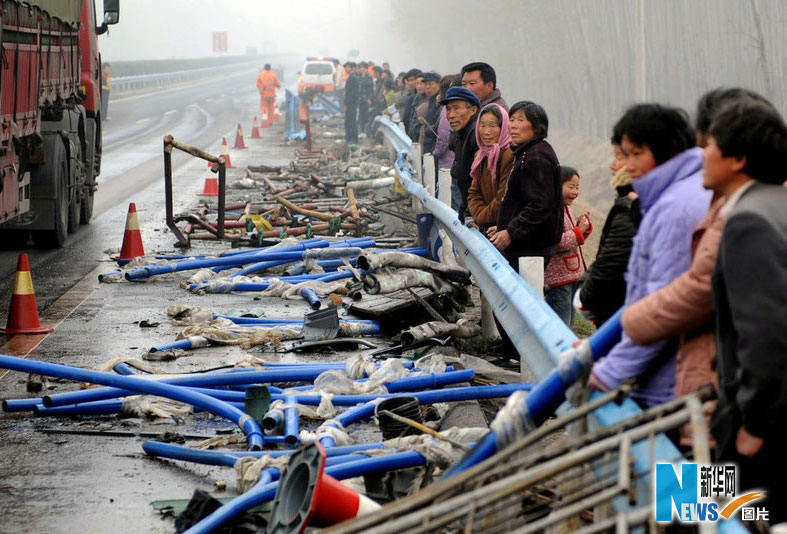 2010年4月12日凌晨5时10分,一辆装载数吨炸药的河北籍中型货车行驶至连霍高速民权段双塔镇境内时,发生大爆炸,现场2人死亡,4人重伤。高速路面被炸出一个20多平方米的大坑,深近1米,周围100平方米的路面被炸开多条裂缝,附近近千户房屋受损,民权、兰考县城均有震感