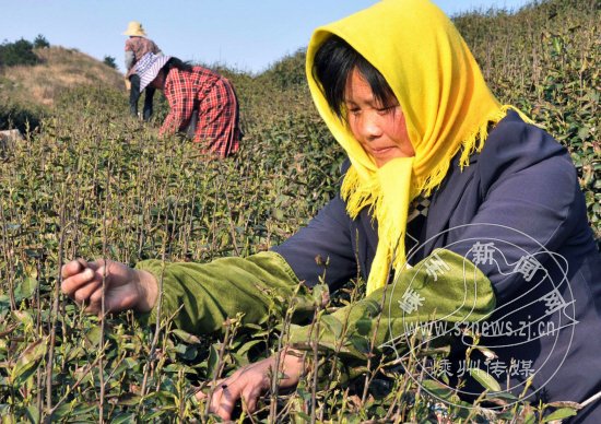 虽然遭遇多次倒春寒,但我市很多茶园近日已开始大面积采摘。与往年一样,为解决劳动力短缺的难题,茶农从江苏、安徽、湖南等地请来大批采茶女工。图为来自江苏省连云港的采茶女正在海拔500多米的崇仁镇荆岗雾茶场里采摘春茶。