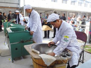 据了解,这次参加比赛的56位选手有55位采用了机械和手工相结合的炒制方法。上午9时半,比赛正式开始,56名选手同时开炒。选手们娴熟地抓起一把青叶,均匀地撒入已预热的茶机中,10多分钟后,茶香便开始弥漫在整个比赛场地。