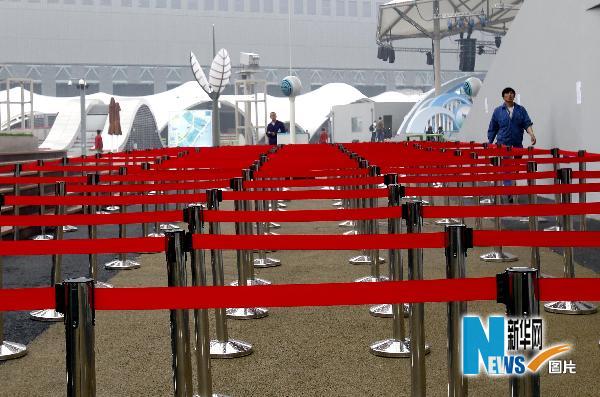 4月19日,园区内参观预约区的排队引导装置已布置妥当。新华社记者 刘颖 摄