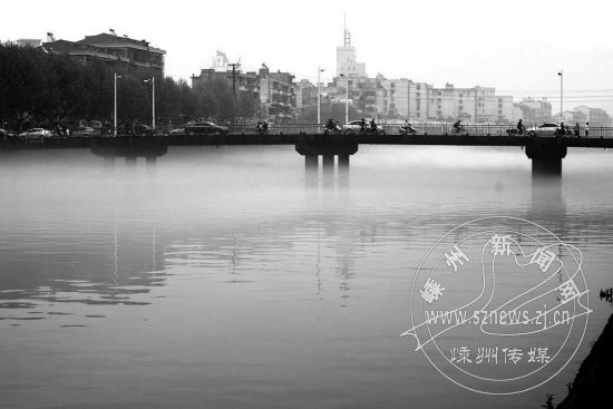 昨天下午,长乐江江面凝结了一层水雾,远远望去,水面上的桥梁若隐若现,宛若仙境(图中的桥为西桥)。为何会形成这样奇特的景观呢?市气象局的气象专家告诉记者,这几天由于暖湿气流活跃,空气中的湿度非常大,而江面和湖面上的湿度更大,温度相对较低,所以靠近水面部分的水气易凝结成雾气,雾气蒙在水面上,因此就出现了这样奇特的景观。