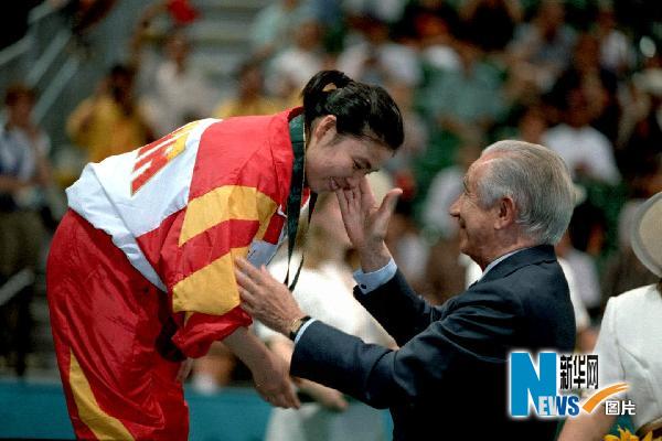 4月21日,国际奥委会终身名誉主席萨马兰奇去世。这是1996年7月31日,邓亚萍获得第26届奥运会乒乓球女子单打金牌后,时任国际奥委会主席的萨马兰奇亲自为她颁奖的资料照片。新华社发