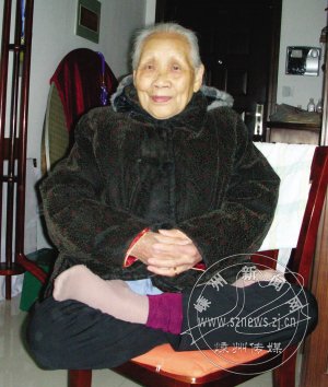 按这位朋友的指点,笔者近日来到剡湖街道鹿鸣花苑6幢201室潘国梁家,见潘国梁的母亲沈香云老太正打着盘坐,之后又像往常一样诵读起诗文,声音清楚能辨。