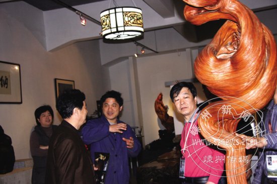 来宾们在艺术村欣赏嵊州根雕