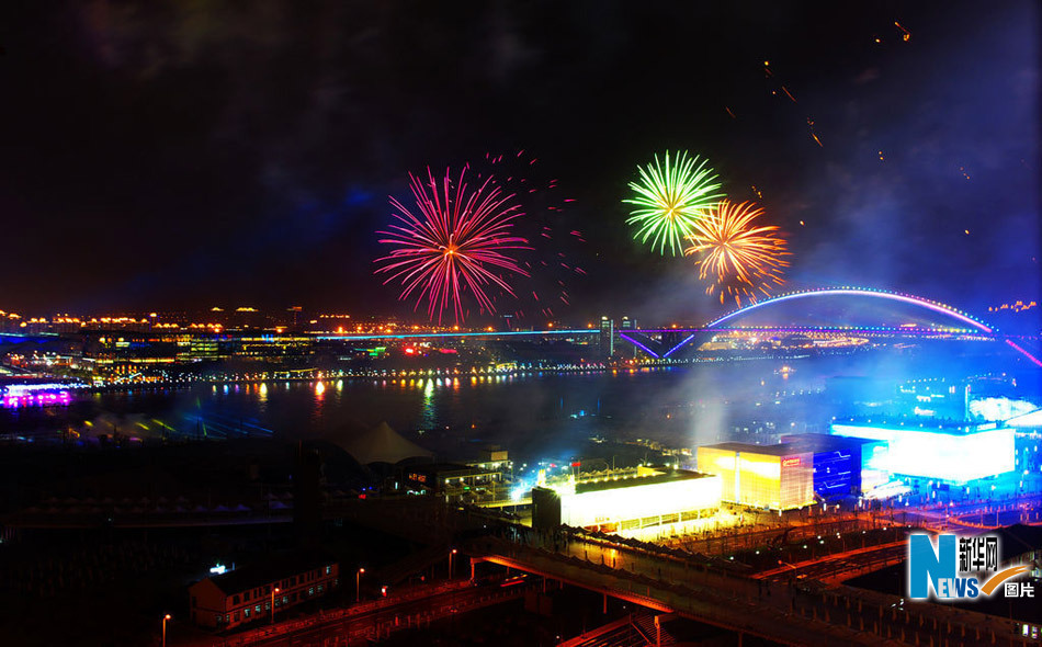烟花表演在世博会浦东和浦西园区等区域彩排。