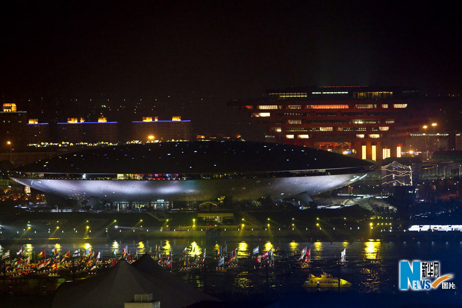 上海世博烟火预演在黄浦江畔拉开帷幕。