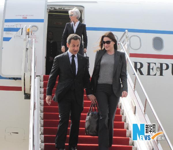 4月28日,法兰西共和国总统尼古拉·萨科齐抵达西安,开始对中国进行为期三天的国事访问。新华社记者 杨一苗 摄