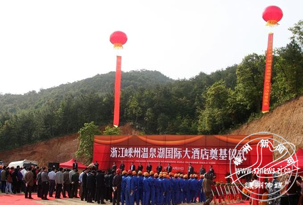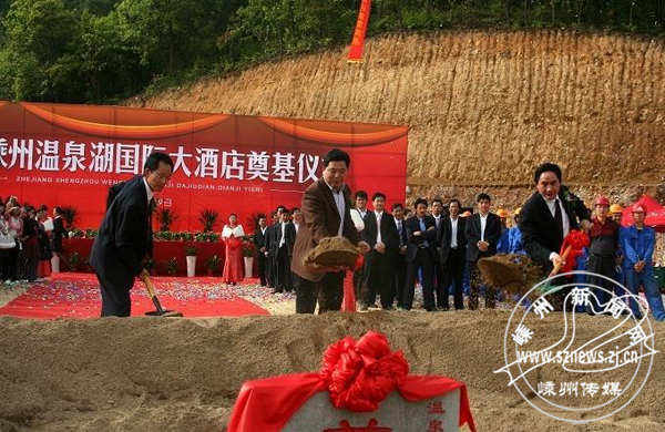 4月29日下午,浙江嵊州温泉湖国际大酒店奠基仪式在温泉湖国际度假旅游区举行。国家旅游局副巡视员邓宗德,绍兴市副市长杨文孝,嵊州市领导盛秋平、朱钦苗、王生灿,投资方苏州中翔集团董事长郭献斌等出席奠基仪式。副市长周晓东主持奠基仪式。