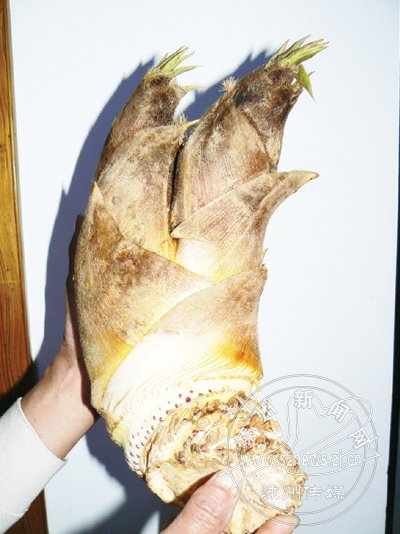 戴先生说,这株两个头的毛笋是前几天他在自家毛竹林里挖到的,当时感到很好奇,村里七八十岁的老人都说以前从未见过。