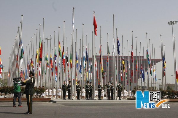 30日上午8:30分,在世博园中国馆附近的“旗林广场”上举行了“旗林”升旗仪式。