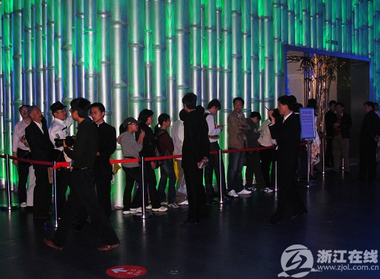 “竹立方”的清雅外形,浙江文化的艺术融合,青瓷巨碗的完美演绎,使得浙江馆在前期试运行中就赢得了超高口碑,今天不少游客慕名而来。