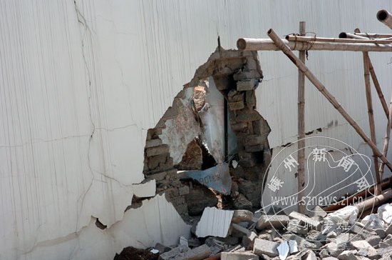 瑞林羊绒公司围墙被穿了个孔