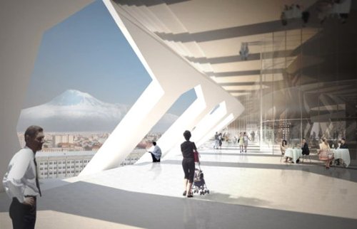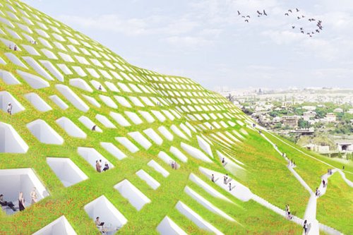 在生态山顶部的大洞起到天窗的作用,可以让光线进入生态山内部。生态山内部的热空气不断上升,并从顶部排走,而冷空气从底部不断进入。Lace Hill位于亚美尼亚共和国首都埃里温,这将是一座天然的美景,和自然融为一体。生态山内部,旅馆和公寓位于南面,可以接受最好的阳光和观看到最好的景色。零售商店和饭店位于较低楼层,而办公区位于北面,非常适合于办公。生态山的建筑设计灵感来自亚美尼亚花边刺绣传统,顶上的洞可以作为生态山内部的天窗。生态山的侧面看起来呈土丘形状,这项设计的目的是为人们提供一个具有多用途的建筑项目。