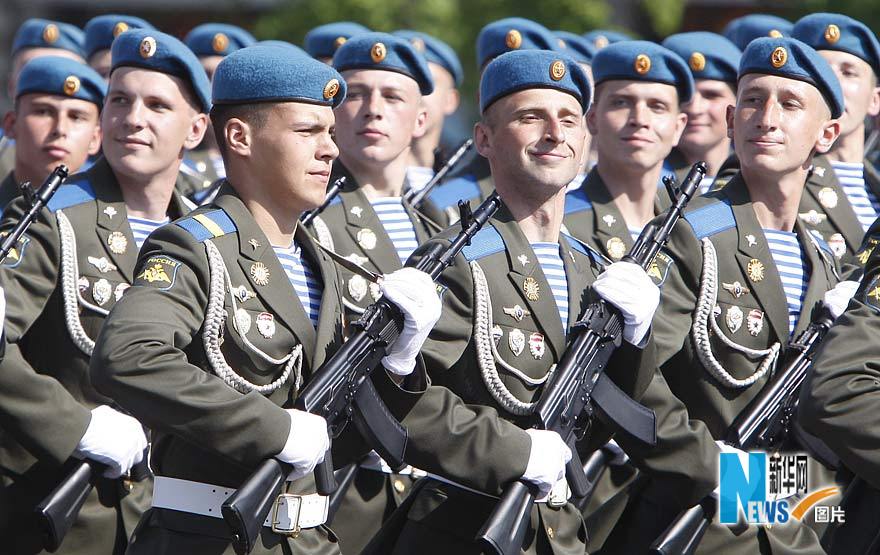 5月9日,俄罗斯士兵在首都莫斯科参加纪念卫国战争胜利65周年阅兵式。俄罗斯当日举行阅兵式,纪念卫国战争胜利65周年。新华社记者鲁金博摄