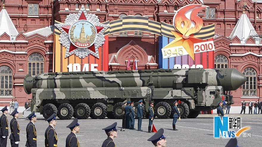 5月9日,在俄罗斯首都莫斯科,俄“白杨-M”导弹系统在纪念卫国战争胜利65周年阅兵式上亮相。俄罗斯当日举行阅兵式,纪念卫国战争胜利65周年。新华社记者鲁金博摄