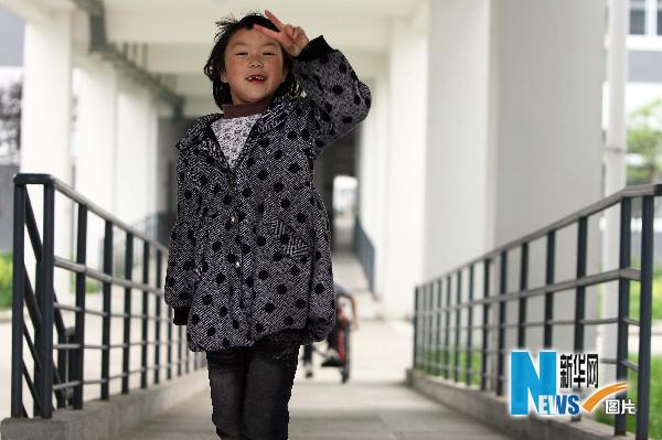 这是在地震中失去右臂的都江堰友爱学校一年级女孩李瑶(5月7日摄)。汶川地震灾区的孩子们,灾难过去两年了,你们可曾知道,全国人民对你们的牵挂从未停止过。来吧,面向镜头,让关心你们的人看看你们自信的笑脸吧…… 新华社记者郑悦摄