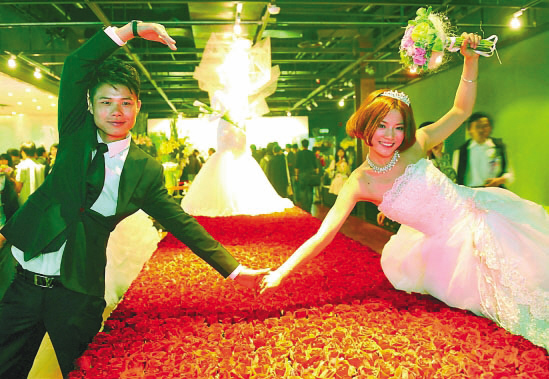 世博文化中心音乐俱乐部,被巴黎JFC顶级花饰专家装扮成了梦幻礼堂,由法国馆操刀主办的“法兰西浪漫婚典”正式上演。